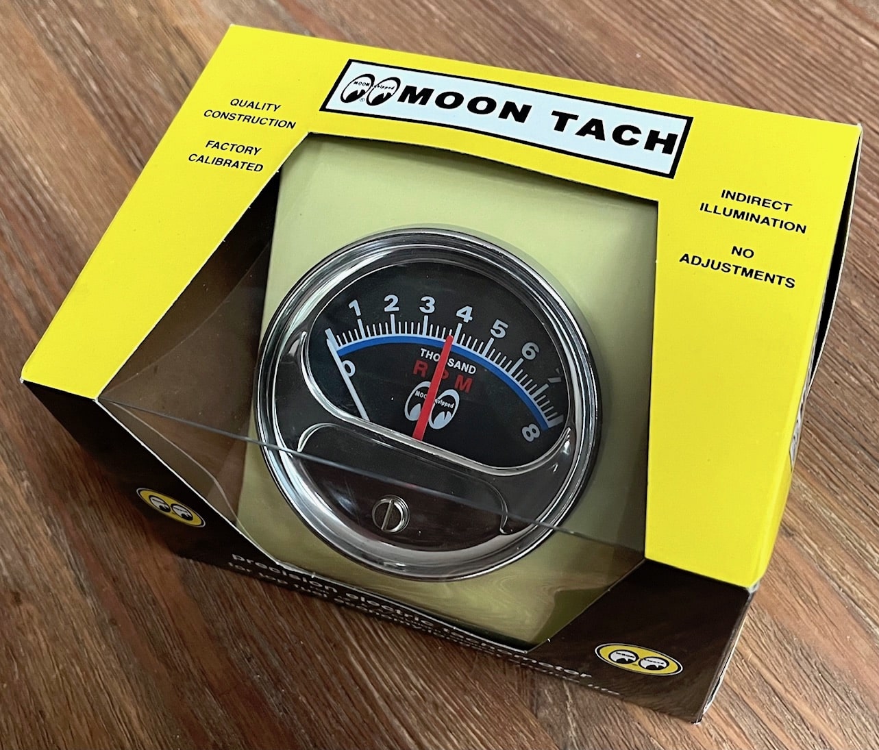 Nostalgic looking half-sweep tach with adjustable redline.